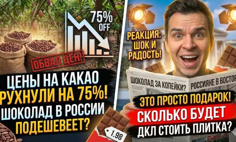 Стоимость какао-бобов на мировых рынках резко снизилась: фьючерсы упали до 3,5 тысячи долларов за тонну, что на 75% ниже декабрьских пиков 2024 года. Это создаёт предпосылки для удешевления шоколада в рознице.